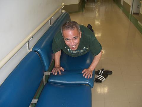 とっても親しい生徒さんがお見舞い来た時に病棟の廊下で腕立て